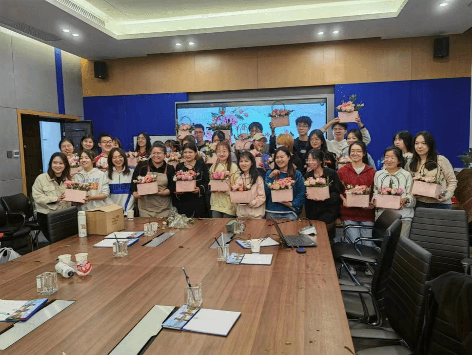 阳春布德泽,万物生光辉。在这花开成海,春意盎然的三月天,为践行以美育人、以德树人相结合的新时代教育实践宗旨,拓展学院美育实践新路径,由计算机学院团委主办、研究生第十一党支部承办的“芳菲花韵,拈花拾趣”插花艺术活动于3月8日下午在学院105会议室顺利举办,带领30余名学院学生共赴一场春天的约会,在一枝一束、一插一剪中体验美育浸润。