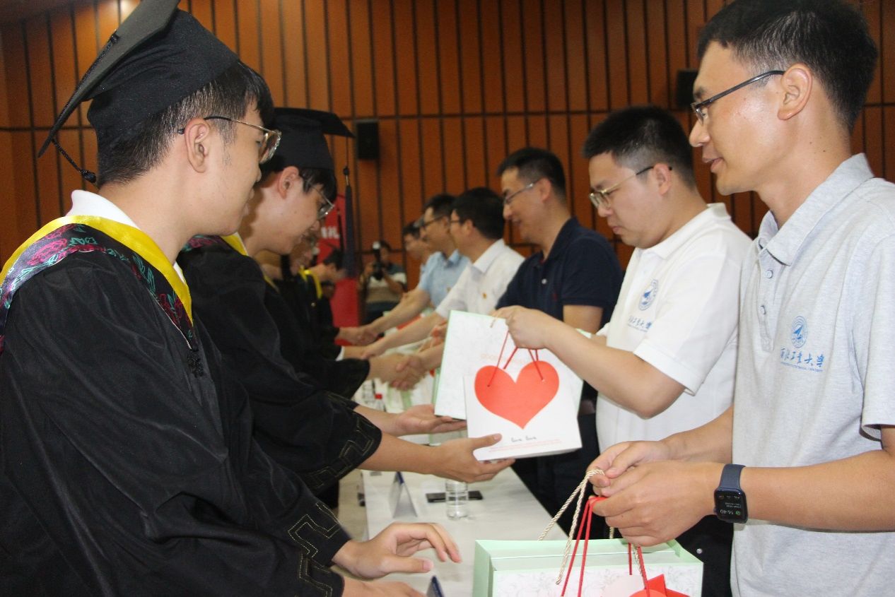 教师代表也向学生赠送礼物,表达了学院教师对即将远行的学子的祝福。