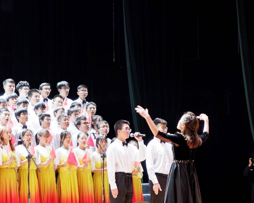 计算机学院百余名师生共同参与了此次合唱比赛。在本次比赛中,学院师生共同演唱了《映山红》和《我和我的祖国》两首红色经典歌曲。《映山红》是电影《闪闪的红星》的插曲,表达了人民对工农红军的一种期盼之情,也表达了我们对红军的敬佩之情,同时《我和我的祖国》也体现了我们的爱国情怀。