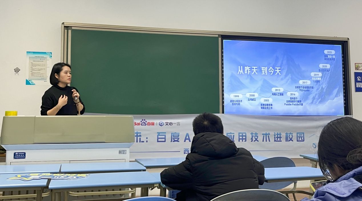 随着大模型时代的到来,行业对AI人才的能力提出了更高的要求,AI人才的培养也面临诸多挑战。为培养提升研究生的创新和实践能力,11月29日,百度高校合作部周方棣受邀走进星空体育官网登录平台“研究生创新能力提升与就业实训”课堂,与学院师生进行交流,并作“AI原生应用技术进校园”相关讲座,就AI原生应用的最新进展和实际应用做了相关分享。