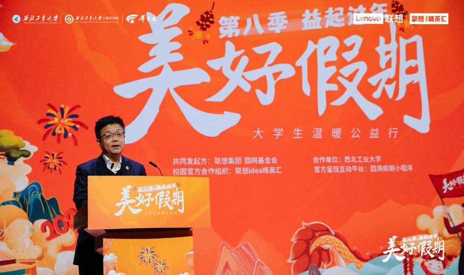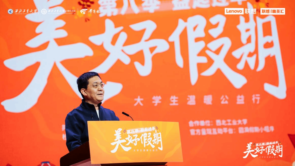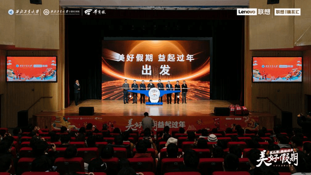 2024年1月9日,联想“美好假期”大学生温暖公益行第八季全国出发大会在西北工业大学举行,本次大会由西北工业大学和联想集团联合举办,计算机学院承办,来自社会各界的领导、机构代表、西北工业大学400余名大学生志愿者代表齐聚长安校区南山艺堂,与全国110所高校的青年志愿者们一起连线,正式宣布这项已经持续举办五年的公益活动全新一季启航。