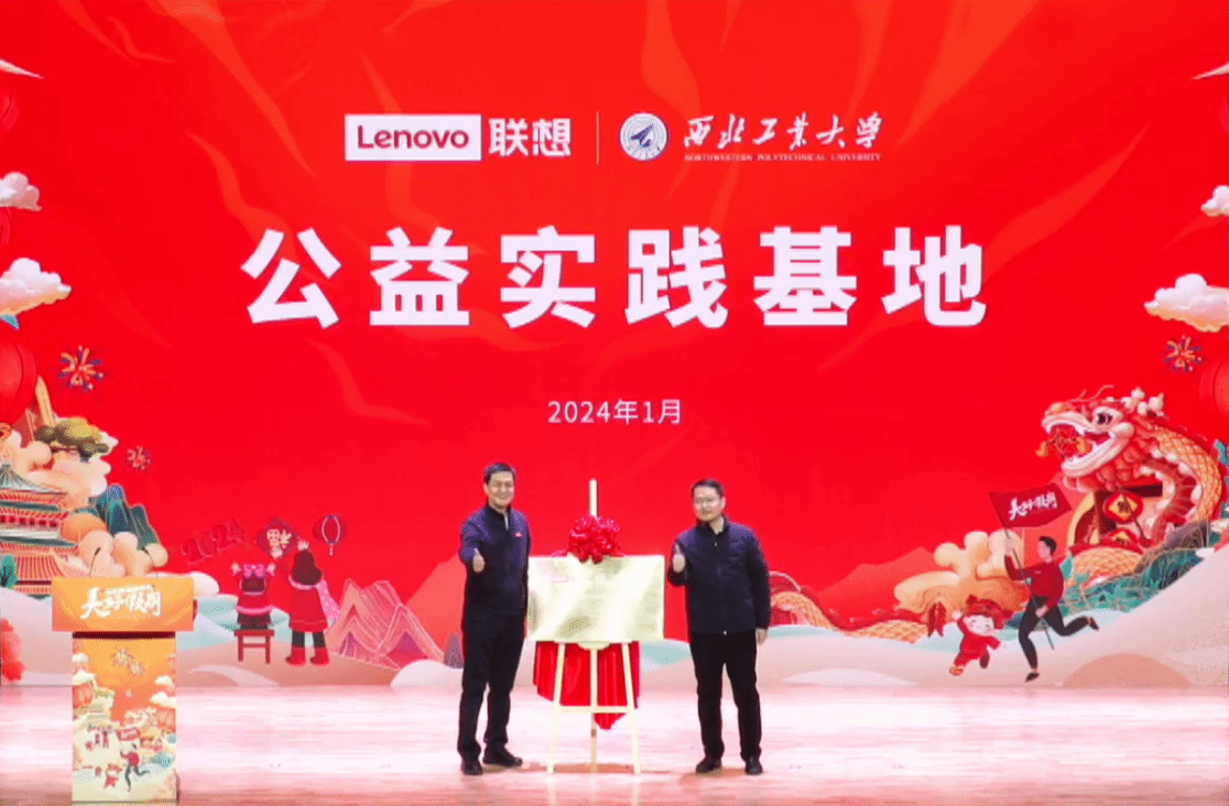 以本次大会上,校团委书记佘磊磊与联想中国副总裁冯蔚东共同为“联想——西北工业大学公益实践基地”进行了揭牌,标志着联想集团与西北工业大学在公益的探索路上携手共进,不断升级。