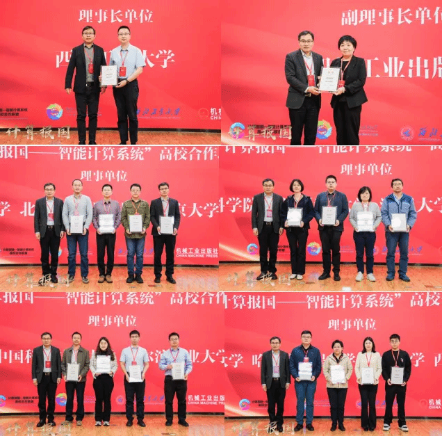 随后举行了“计算报国——智能计算系统”系列教材发布会暨编委会成立仪式。会议宣布“计算报国——智能计算系统”高校联盟成立,为西北工业大学、国防科技大学、北京航空航天大学、北京大学、清华大学、中国科学院大学、南京大学、浙江大学、华中科技大学、西安交通大学、中国科学技术大学、哈尔滨工业大学、上海交通大学、华东师范大学、哈尔滨工程大学、湖南大学、西安电子科技大学、机械工业出版社18家第一批联盟成员单位颁发了证书。