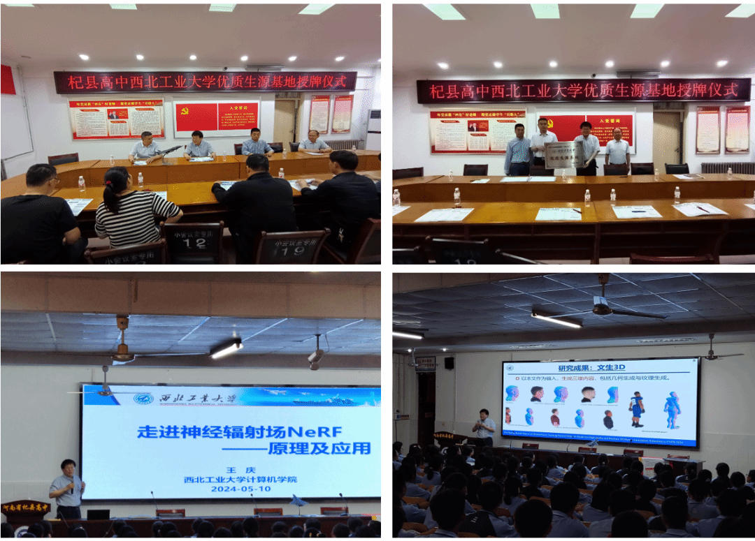 5月10日至12日,计算机学院王庆教授和郗润平副教授前往河南杞县高级中学、开封求实中学、河南大学附属中学开展了形式多样的招生宣传工作。10日两位老师历经八个多小时行程到达杞县,受到杞县高级中学师生的热烈欢迎。两位老师与该校领导和重点班老师进行了座谈交流,开展了优质生源基地签约、授牌、送喜报等活动。王庆为学生们做了题为《走进神经辐射场NeRF——原理与应用》的前沿技术科普讲座,受到师生一致好评,报告结束后同学们围着王老师讨论交流,久久不愿离去,王庆老师鼓励同学们积极报考西北工业大学。