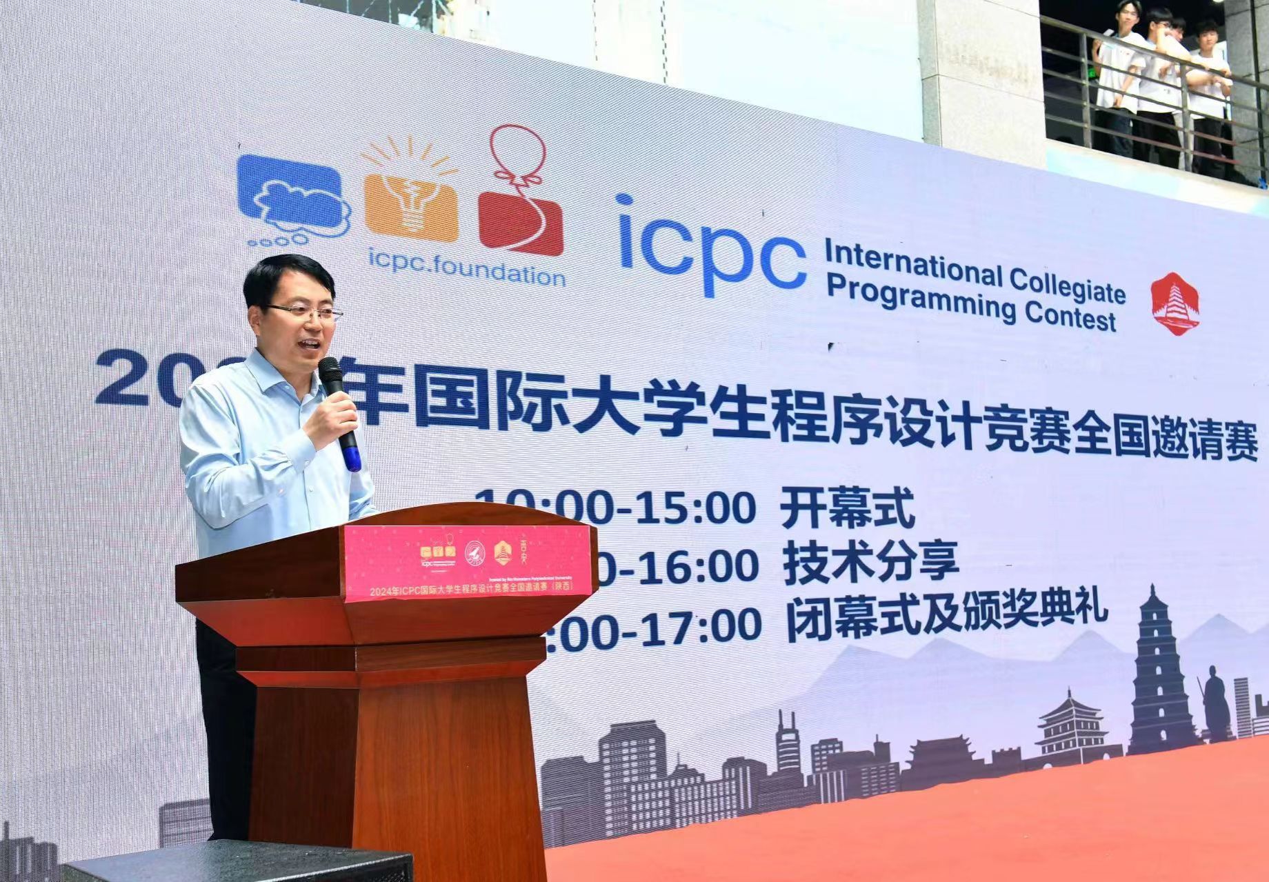 5月19日上午,在西工大长安校区实验大楼举办了开幕式。西北工业大学教务部副部长张学良、计算机学院党委书记李春科、国际大学生程序设计竞赛亚洲EC委员会主任、北京大学人工智能研究院副院长李文新、ICPC亚洲委员会共同主任姜学锋、华为技术有限公司和苏州同元软控信息技术有限公司的企业代表等嘉宾出席了开幕式。开幕式上,张学良介绍了西工大学生学科竞赛活动的实施情况,表示将努力为参赛选手和教练提供优质的服务。李文新盛赞西北工业大学是ICPC竞赛在中国蓬勃发展的重要支撑力量,有着举足轻重的地位。李春科向所有参赛选手和教练员介绍了计算机学院与ICPC彼此成就、共同进步的历程,介绍了计算机学院在第五轮学科评估中所取得的成绩,并欢迎参赛队员后续到西工大深造。
