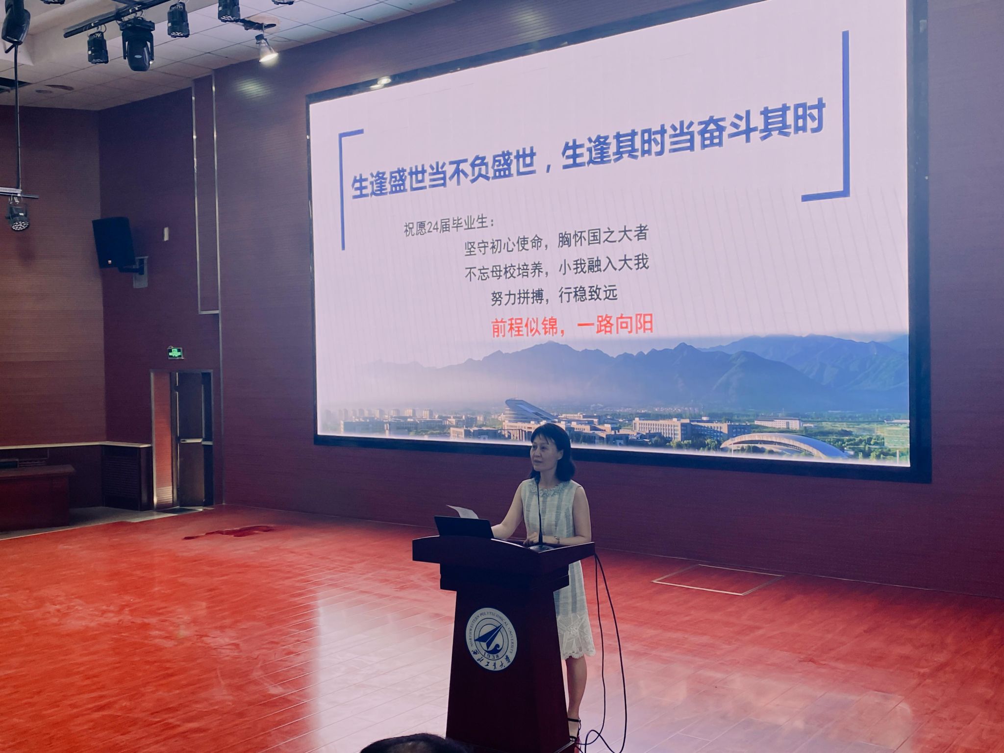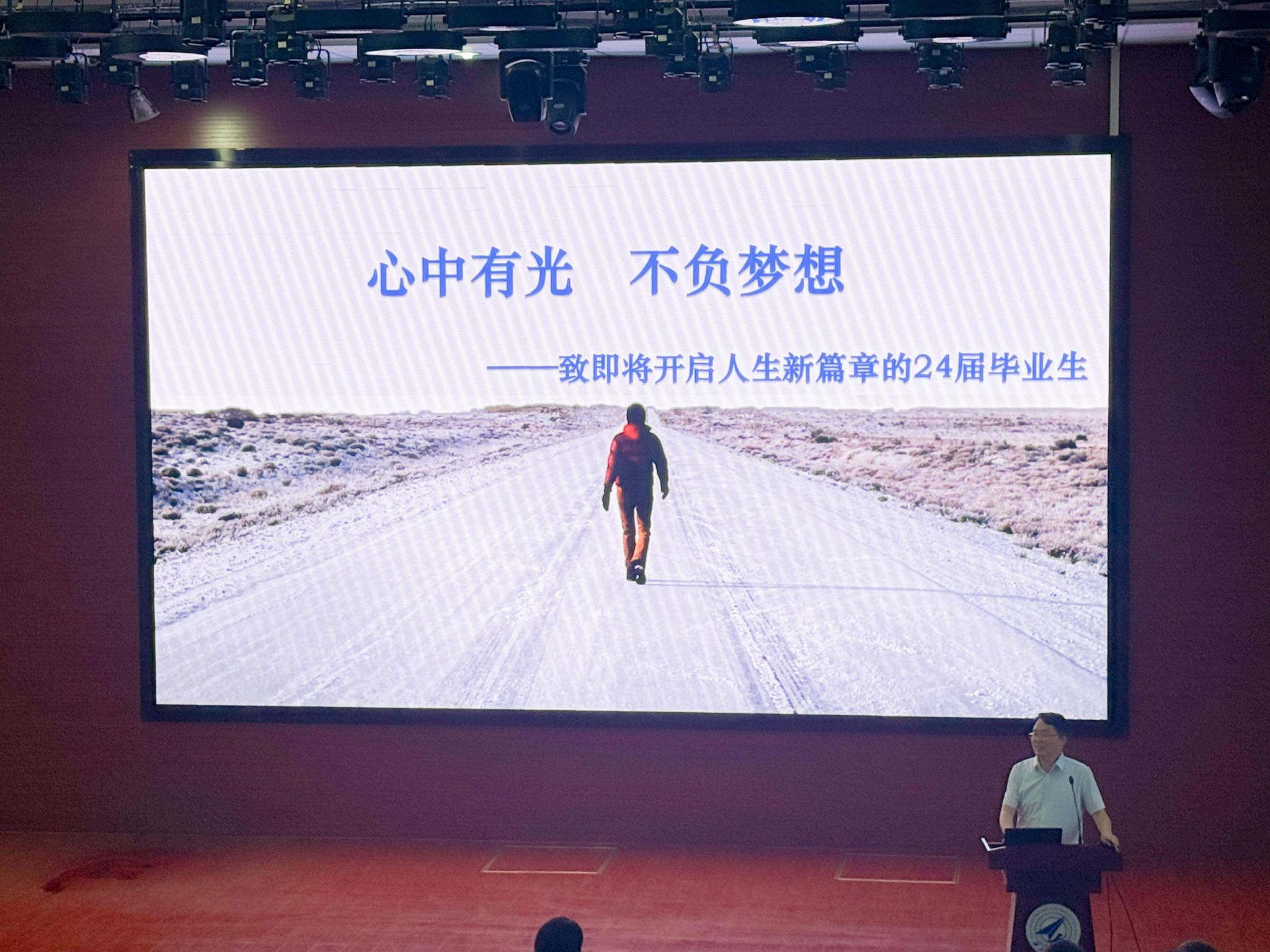 6月18日下午,计算机学院在教西D100报告厅举行2024届本科生毕业教育活动。学院党委书记李春科作《心中有光,不负梦想——致即将开启人生新篇章的24届毕业生》主题报告,为毕业生讲授“工大最后一课”。计算机学院党委副书记赵媛媛主持,学院2024届全体本科毕业生及辅导员刘乐、郑异和兼职辅导员李琪、陈松玲参加。