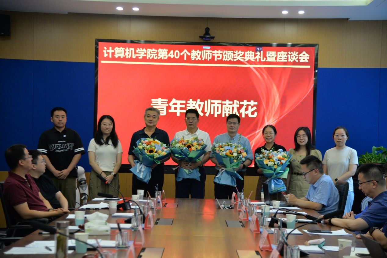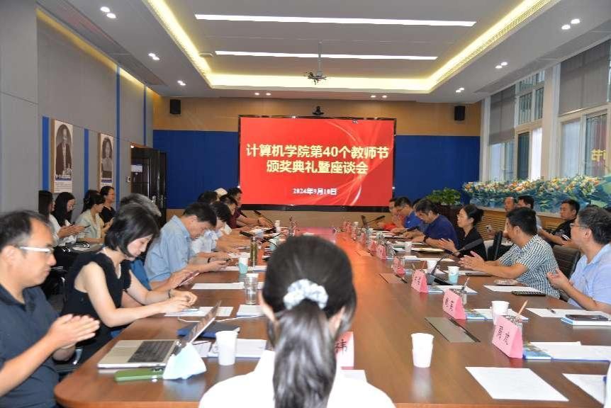 2024年9月10日,在第40个教师节来临之际,计算机学院2024年庆祝教师节表彰座谈会在学院楼105会议室举行。党委书记李春科、院长尚学群,学院领导班子,获奖集体、教师代表和新入职教师以及学生代表参加大会。表彰座谈会以“大力弘扬教育家精神 加快建设教育强国”为主题,由副院长郭斌主持。
