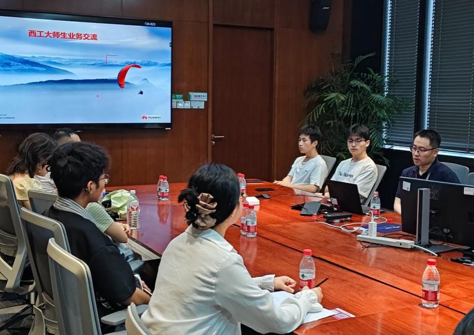 下午转赴华为西安研究所,师生参观了融合科技与人文的现代化园区,深刻体悟华为“艰苦奋斗、开放进取”的企业价值观。在Cloud Open Labs创新实验室,技术专家系统介绍了华为如何通过AI赋能政务、金融、制造等千行百业,提供智能化解决方案。在交流座谈会上,华为人力资源与技术专家详细介绍了研发、算法、产品等核心岗位职责,并重点探讨了AI在软件研发中的变革性实践——从代码文档实时生成到建立AI驱动的内部知识库,从而提升了研发效率与质量。