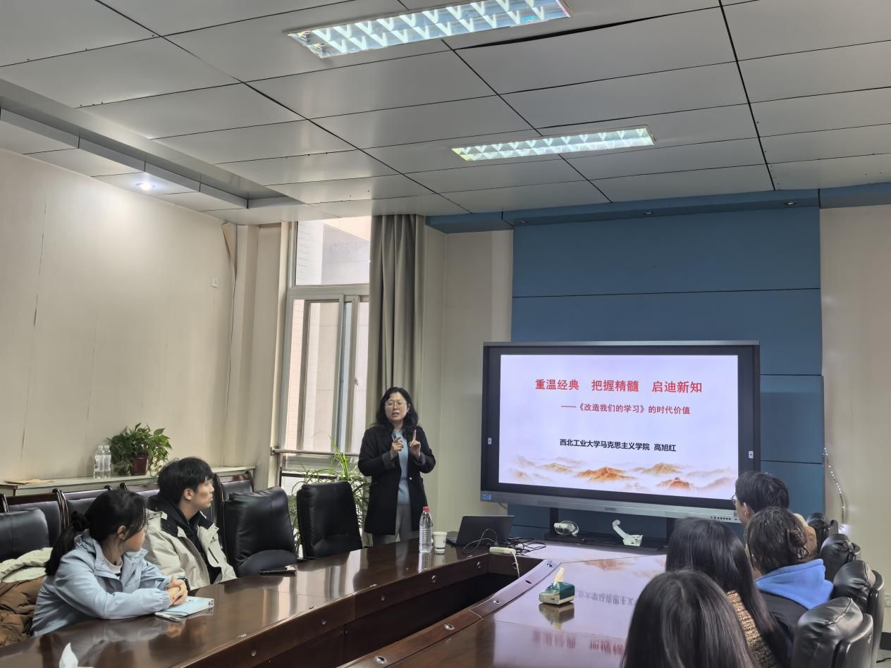 为深入学习贯彻党的二十大及二十届四中全会精神,帮助青年学生传承经典智慧,赋能时代学习,切实增强文化自信与使命担当。11月5日,计算机学院特邀马克思主义学院教授、博导高旭红老师,在计算机学院203会议室为全体入党积极分子开展了一场题为《重温经典把握精髓启迪新知——<改造我们的学习>的时代价值》的专题党课全体入党积极分子及部分学生代表参加学习,课程围绕《改造我们的学习》的时代价值展开。