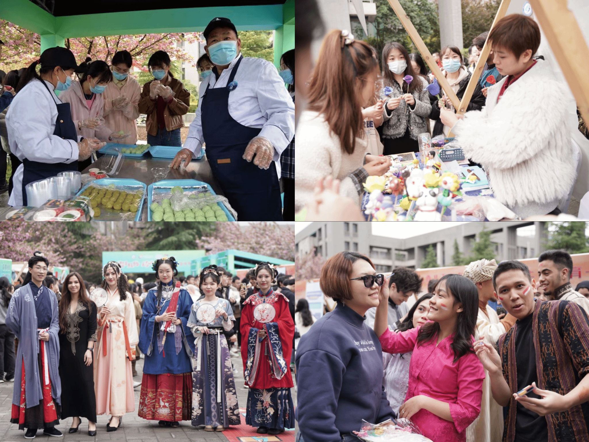活动现场,为吸引更多参与者,各展位负责人“尽显神通”。学院特别邀请了后勤产业海天苑专区的专业团队,为观众们提供了百余份为文化节专属订制的精美青团,新鲜出炉的传统美味受到了现场观众们的热烈欢迎,场面火热一“团”难求。巴基斯坦的歌舞秀、印度尼西亚的互动、中华文化体验区的投壶、面人等,现场摊位都摆起了长队,在这趟沉浸式的国际文化交流中,各国青年尽情感受着文化的碰撞与交融,也结识志同道合的新朋友,讲述着家乡故事、分享着丰富见闻,不同种族的青年们笑脸洋溢,一起体验和交流不同文化,氛围热闹又轻松。